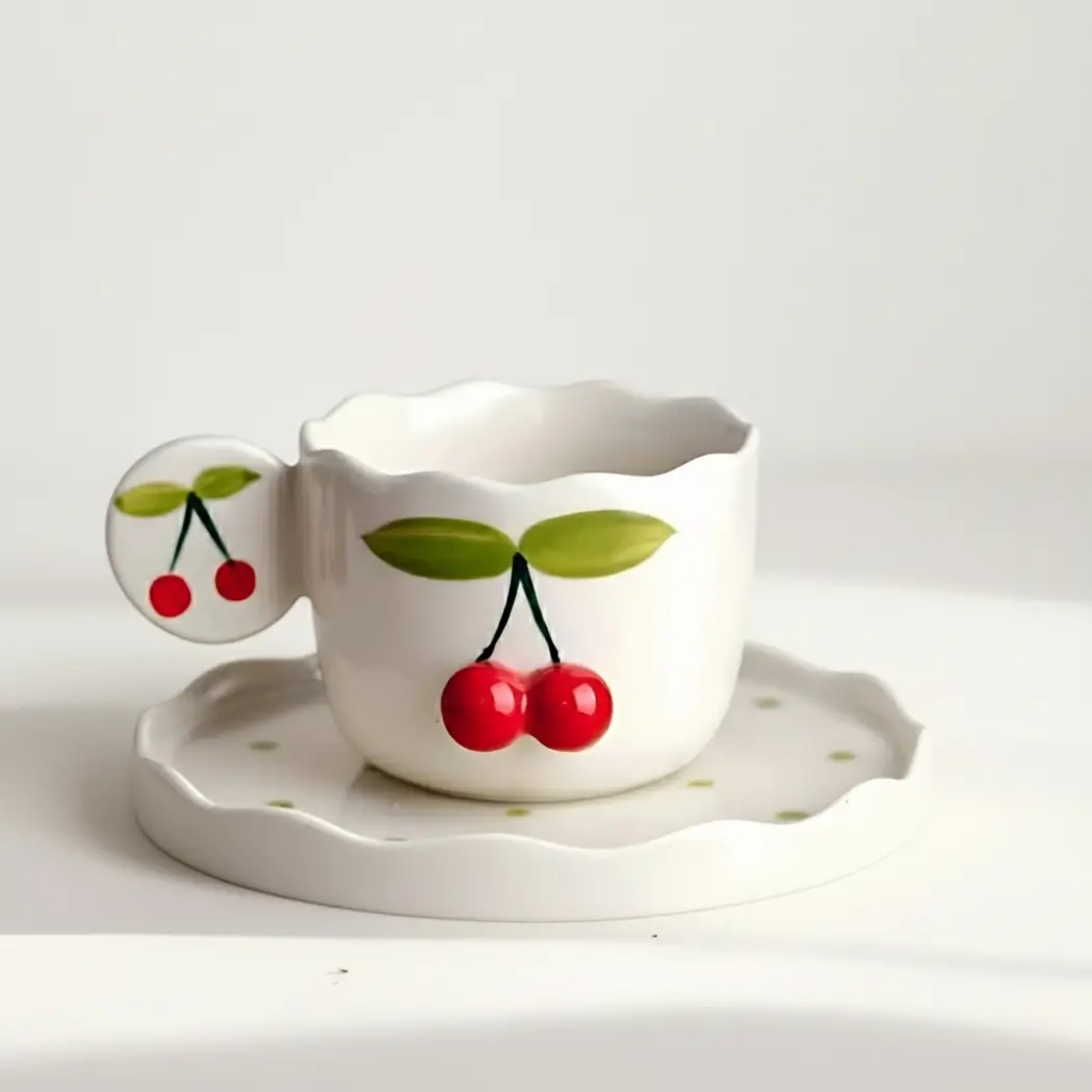 This premium Cherry Designed Cup & Saucer adds a soft, Pinterest-inspired charm to your tea or coffee time. Made from high-quality ceramic with a glossy finish, it offers both beauty and durability. Perfect for home, office desks, or breakfast setups, this stylish set brings a refreshing aesthetic to any space. A wonderful choice for personal use or gifting.